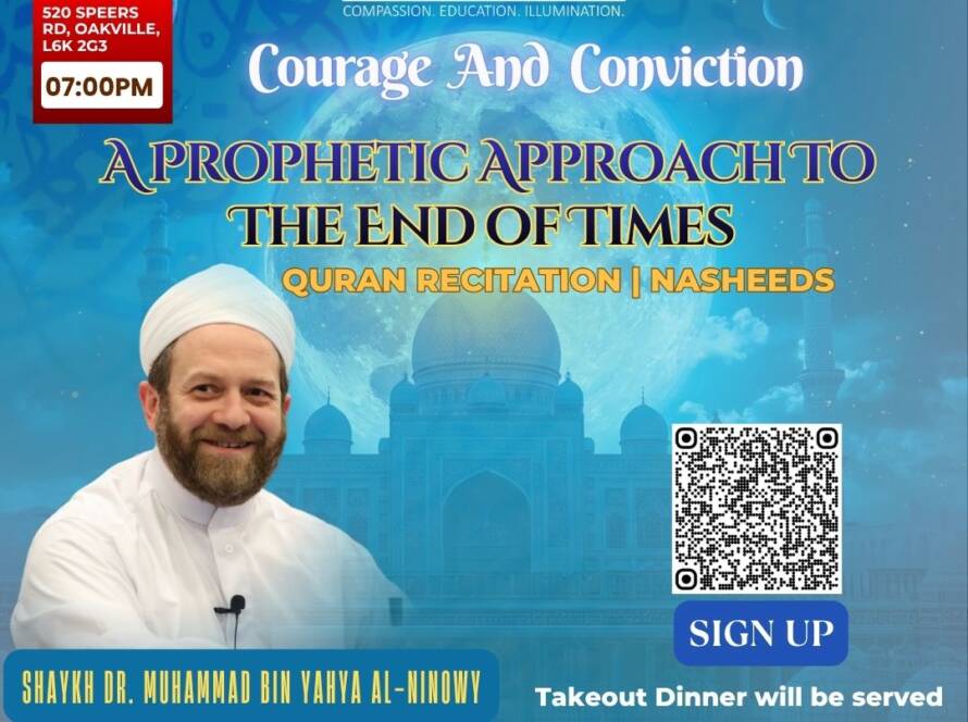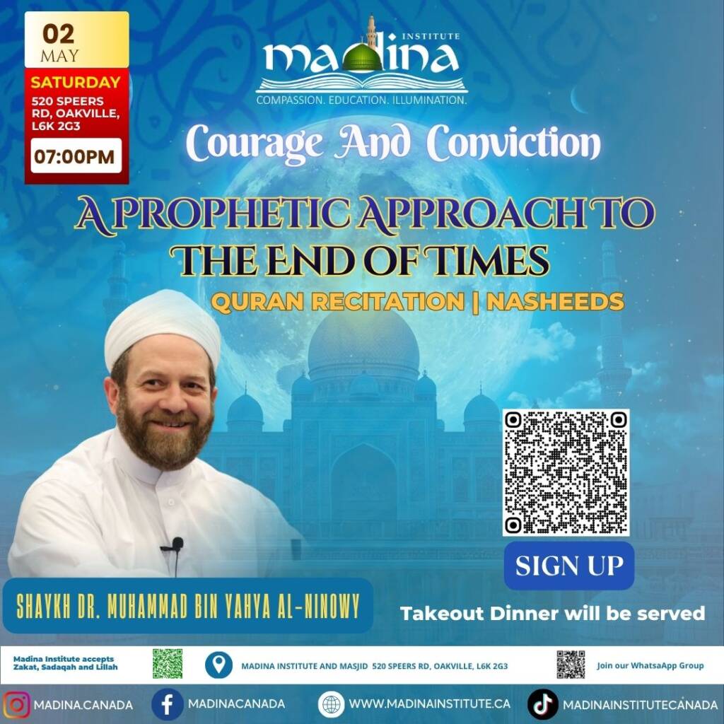COURAGE AND CONVICTION: A PROPHETIC APPROACH TO THE END OF TIMES WITH SHAYKH DR. MUHAMMAD BIN YAHYA AL-NINOWY Join us at Madina Institute & Masjid for a special evening program…